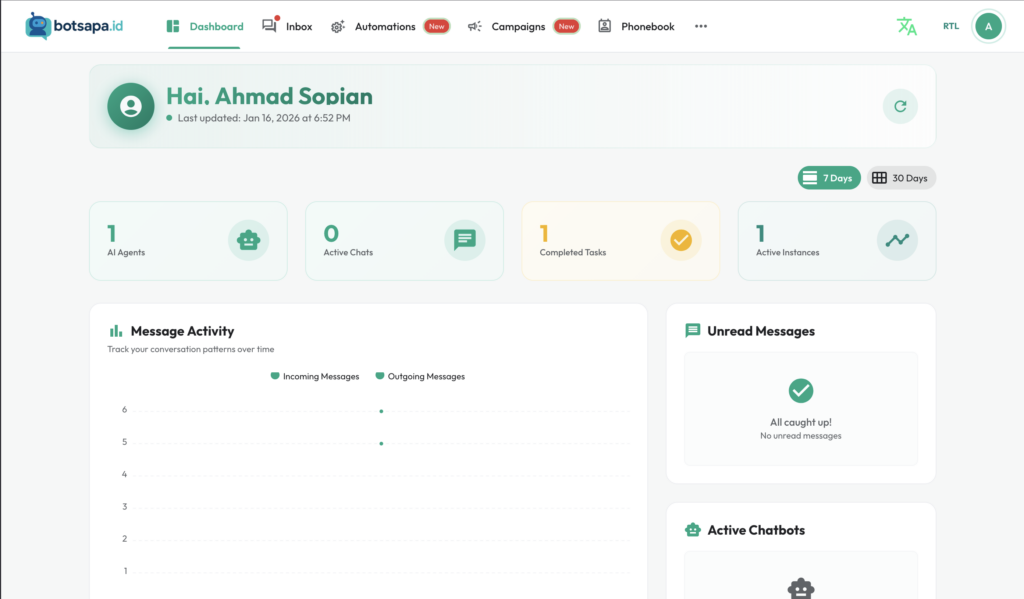 1 Nomor WhatsApp dikelola lebih dari 1 agent, realtime inbox.