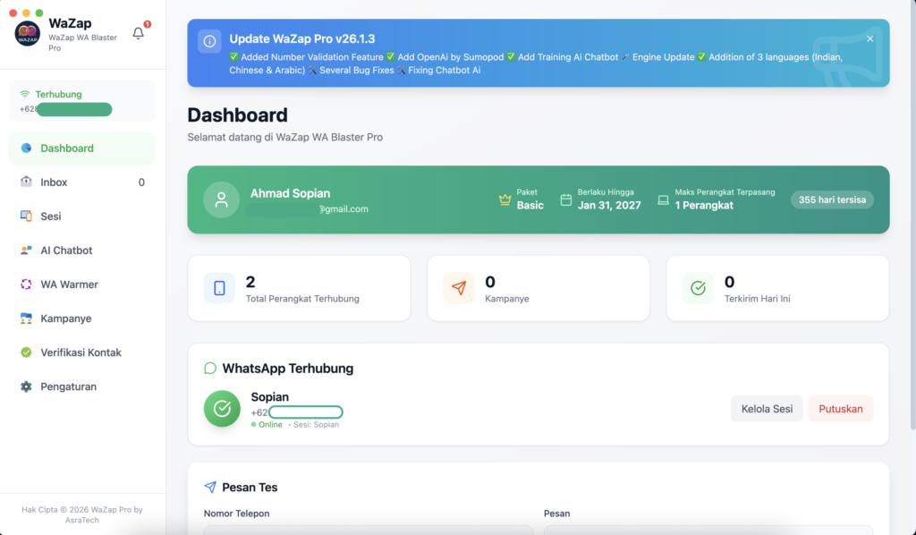 Aplikasi WA Blasting Terbaik 2026 – WaZap WA Blaster Pro dengan AI & Anti-Banned